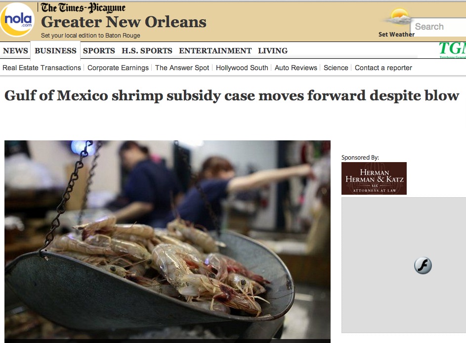 News from the shrimp business in the Gulf though seems to center on legal action against foreign companies accused of “dumping” shrimp on U.S. consumers. See: “Gulf of Mexico shrimp subsidy case moves forward despite blow” (May, 29, 2013)