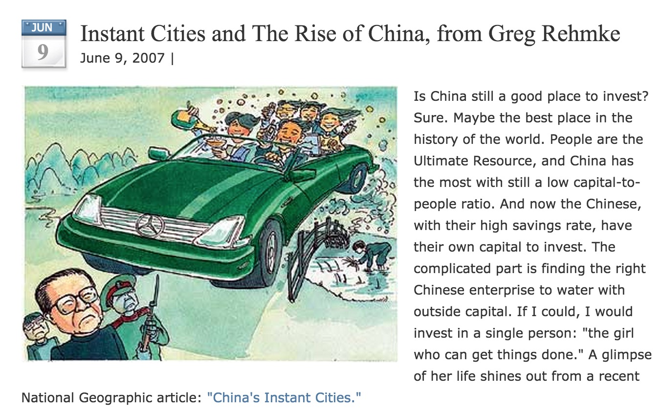 I discussed the rapid economic development of China in this 2007 post, Instant Cities and the Rise of China, and update here (pdf).