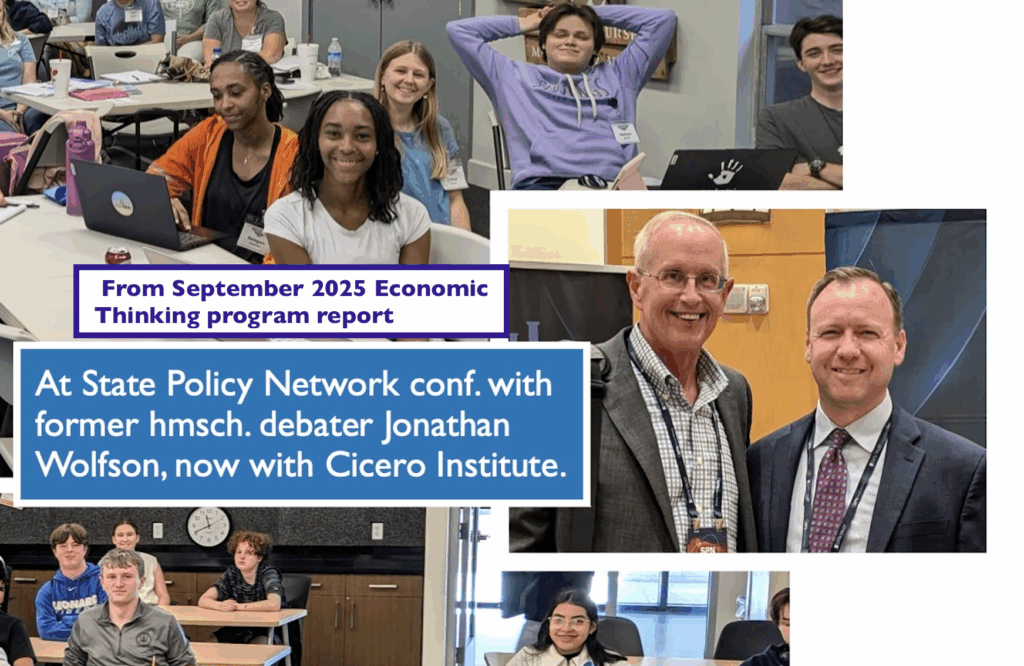 Over years attending State Policy Network annual conferences, I’ve talked with many young staff who earlier as debaters attended Foundation for Economic Education (FEE) and Economic Thinking workshops.