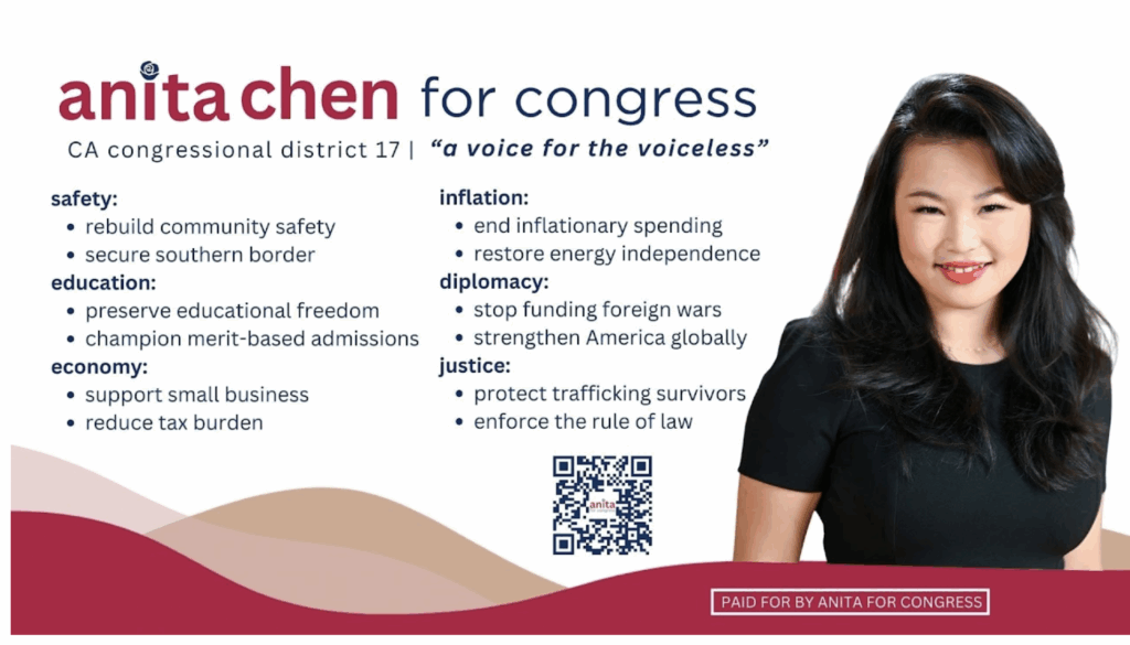 Alumni homeschool debater and debate coach Anita Chen recently ran for Congress (CA congressional district 17). Anita drew from her homeschool debate experience, and knowledge gained attending Independent Institute, Acton Institute, and summer programs. (Here is discussion with Anita on developing Economics Courses and College Credit for Speech and Debate).