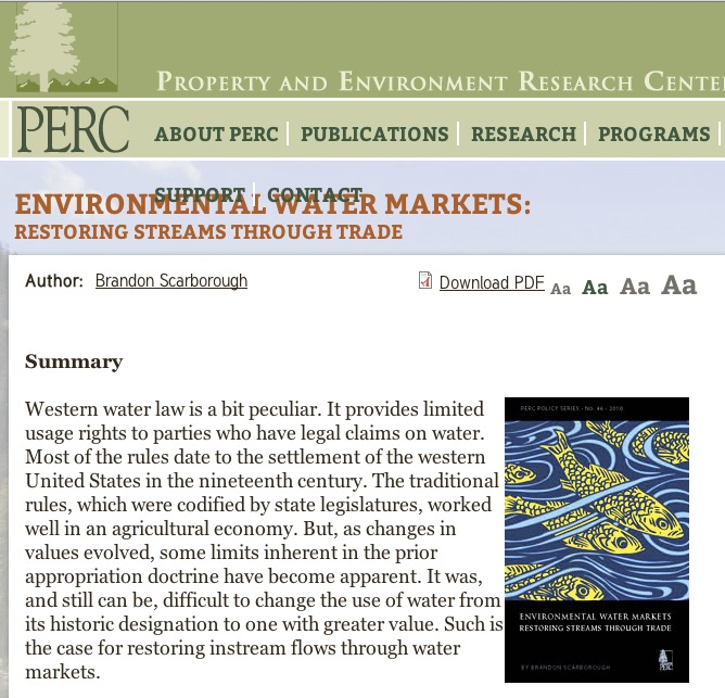 For more on water markets, this PERC study by Brandon Scarborough can be downloaded. Here is excerpt from overview: